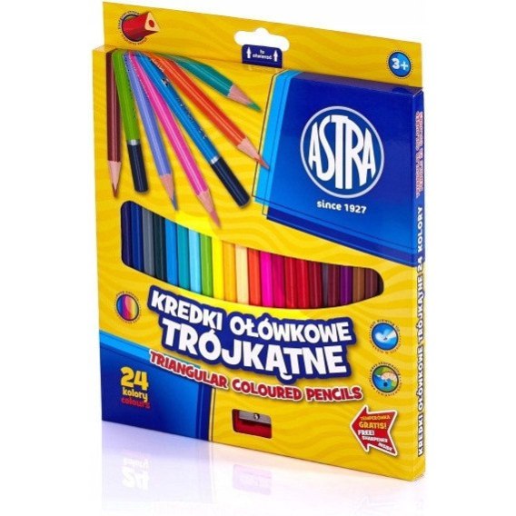 Kredki ołówkowe trójkątne 24 kolory + temperówka 312110003 ASTRA
