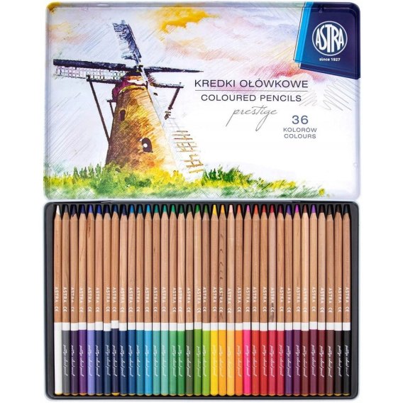 • Kredki ołówkowe zestaw 36 kolorów metalowe pudełko 312117003 ASTRA PRESTIGE
