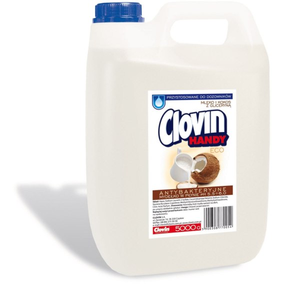 Mydło w płynie 5L ANTYBAKTERYJNE CLOVIN (białe) mleko i kokos z gliceryną