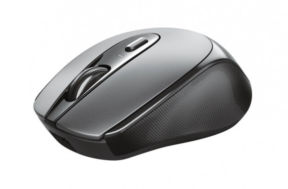 Mysz bezprzewodowa o nowoczesnym wyglądzie i gumowym wykończeniu.